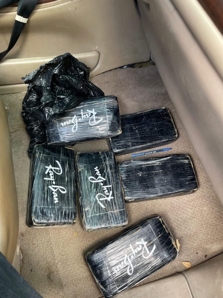 Los detenidos fueron interceptados en la Avenida Venezuela, mientras se desplazaban a bordo de un vehículo marca Lincoln, modelo Navigator, dorado, placa No. G034163. Al requisar el vehículo, los agentes encontraron en el asiento trasero seis paquetes envueltos en fundas plásticas negras con cinta adhesiva que contenía el logo Ray-Ban, conteniendo un polvo blanco, que se presume es cocaína.