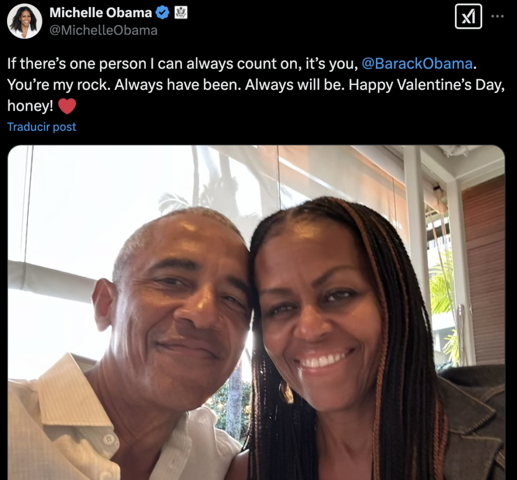 Ante las especulaciones sobre una posible crisis matrimonial, Barack y Michelle Obama celebraron el Día de San Valentín con emotivos mensajes en redes sociales. El expresidente escribió en X: “32 años juntos y todavía me dejas sin aliento”, mientras que Michelle le respondió: “Eres mi roca. Siempre lo has sido y siempre lo serás”.