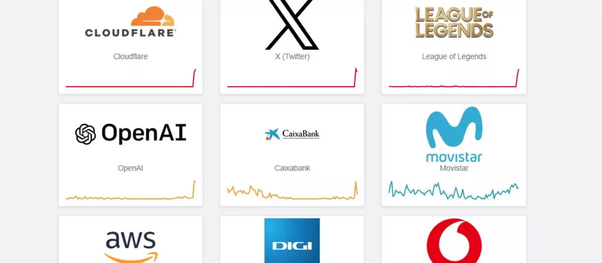 Estados Unidos.- Los principales servicios digitales están registrando un aumento significativo de incidencias según los datos de DownDetector. La gráfica muestra un repunte abrupto en las notificaciones de errores en plataformas clave como Cloudflare, X (Twitter), League of Legends y OpenAI, lo que sugiere un posible fallo generalizado.