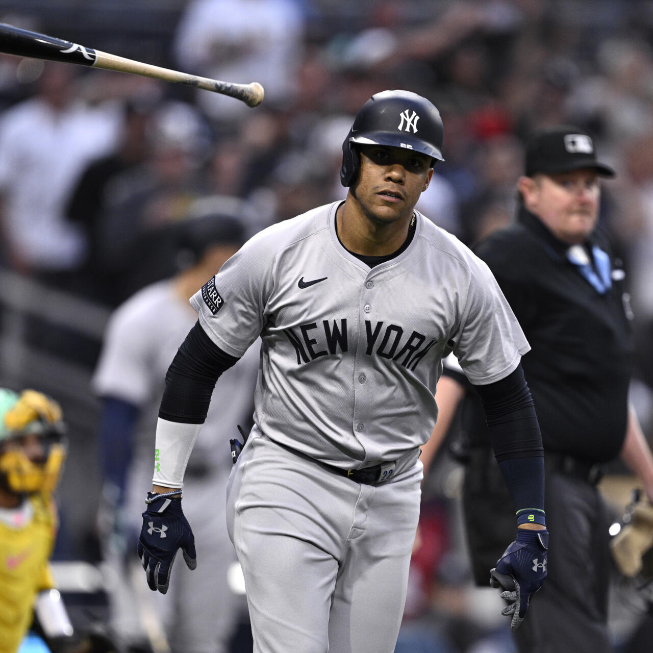 Estados Unidos.-  El dominicano Juan Soto disparó dos cuadrangulares para liderar un ataque de cuatro jonrones de los Yankees de New York y así derrotar este domingo, 8-7, a los Rangers de Texas. “La Fiera”, como es conocido Soto, despachó la pelota por encima de.