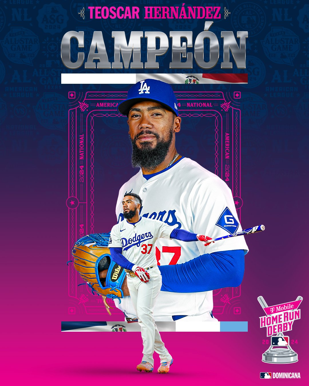 Estados Unidos.- El dominicano Teoscar Hernández de los Dodgers de Los Ángeles ganó el Derbi de Jonrones al derrotar a la estrella local Bobby Witt Jr., de los Reales de Kansas City 14-13 en la ronda final el lunes por la noche. Hernández, de 31 años,.