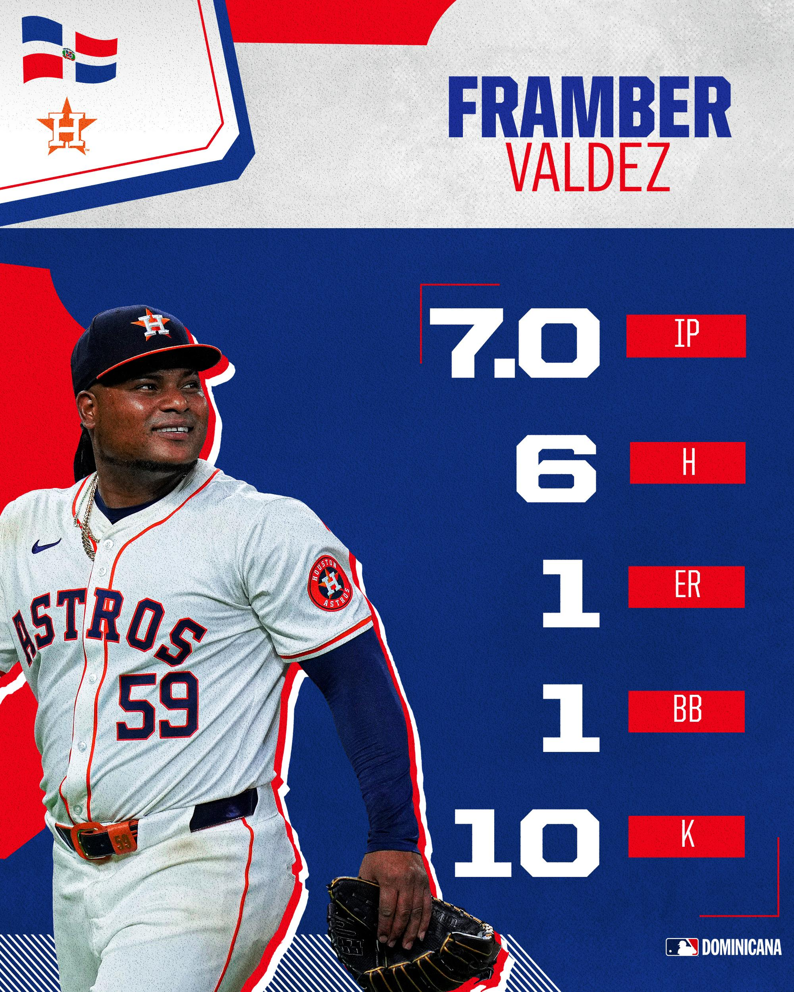 Estado Unidos.- Framber Valdez lanzó siete sólidas entradas, con 10 ponches, la mayor cantidad de la temporada, y Yainer Díaz registró un juego de tres hits para guiar a los Astros de Houston a una victoria interliga de 9-1 sobre los Marlins de Miami visitantes.