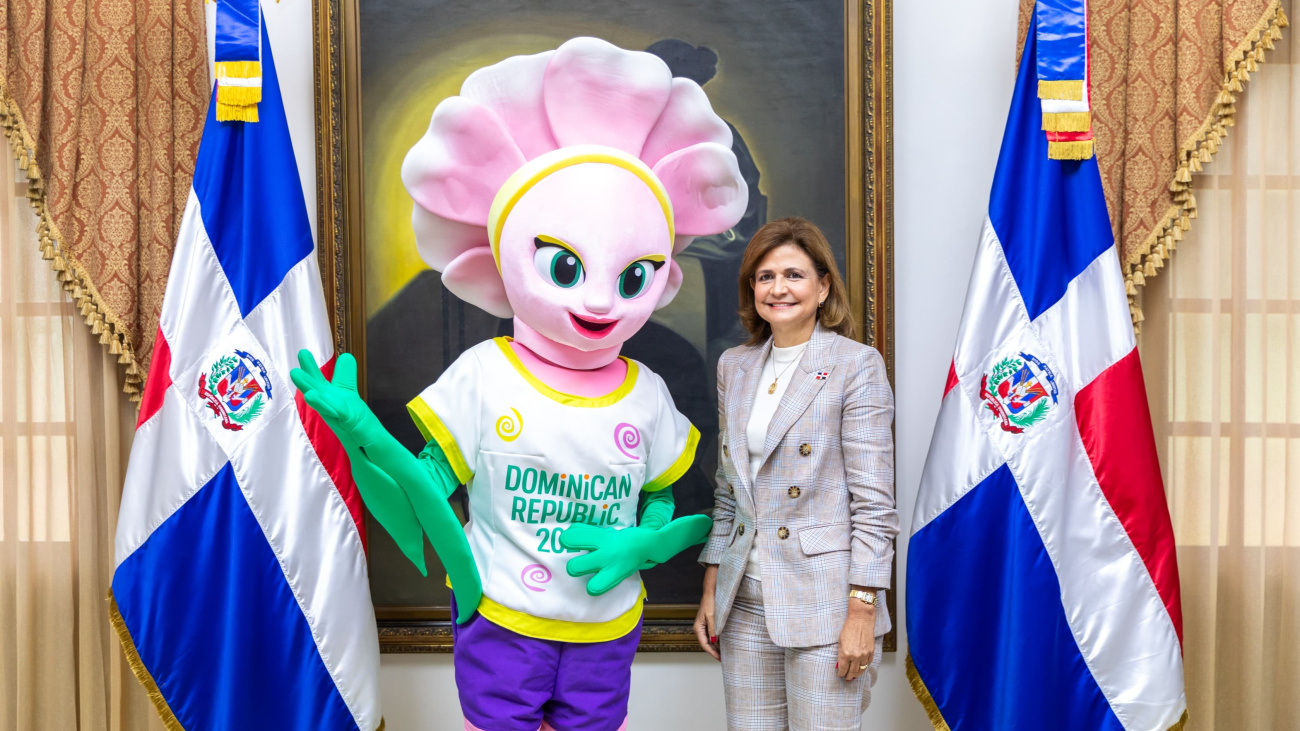Santo Domingo.- La vicepresidenta de la República, Raquel Peña, recibió a la mascota oficial de la Copa Mundial Femenina Sub-17 de la FIFA: Taní, en una colorida ceremonia en el Palacio Nacional; diseñada con un distintivo color rosado que refleja la Rosa de Bayahíbe, la.