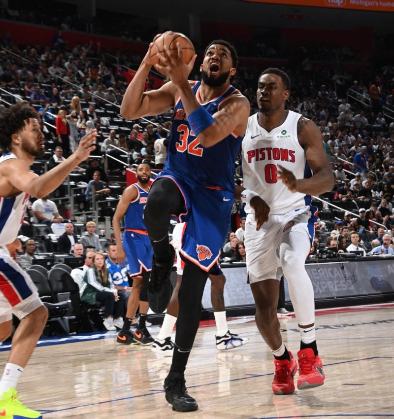 Karl-Anthony Towns aporta 31 puntos en la victoria de Knicks sobre Pistons (118-116)