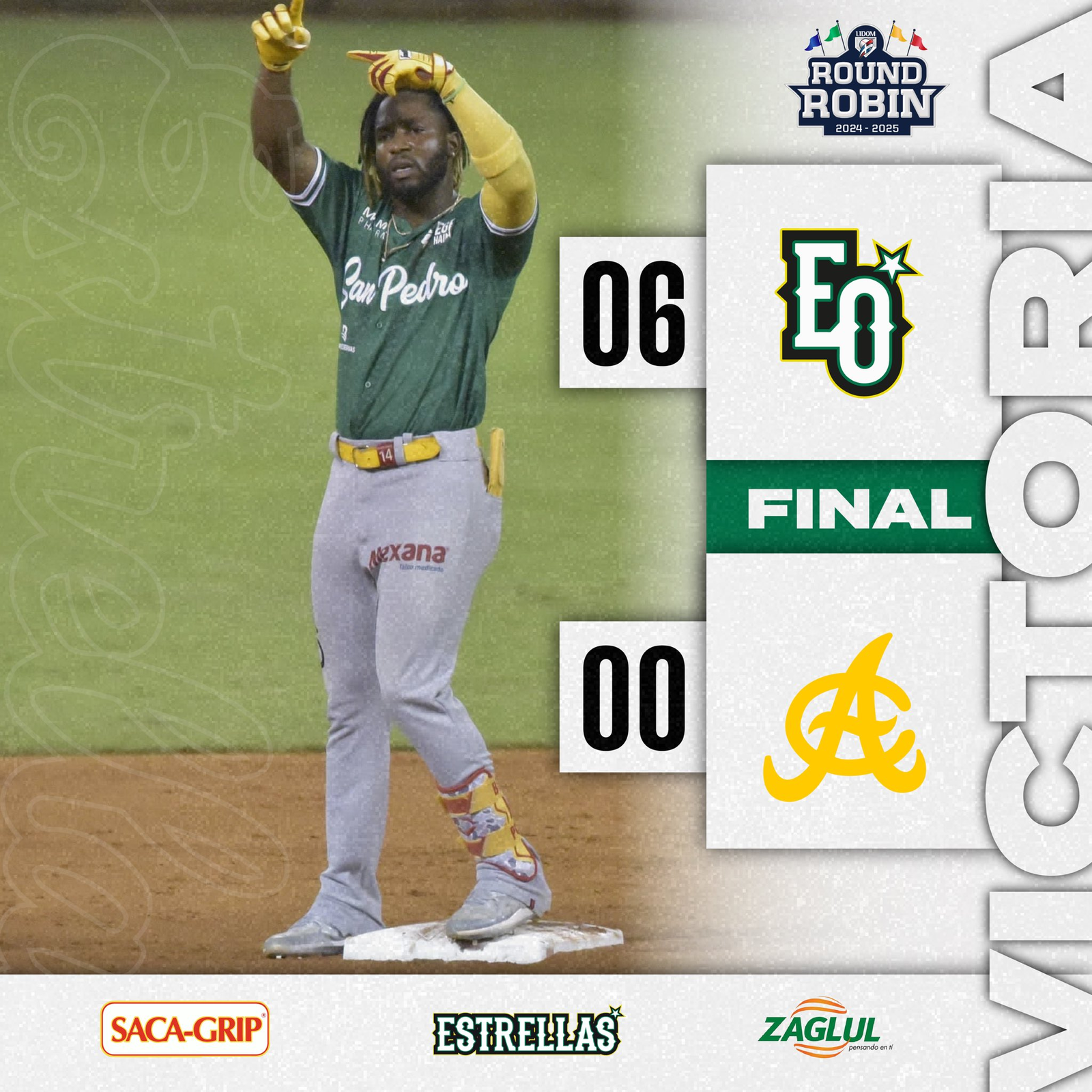 Santiago de los Caballeros.- Las Estrellas Orientales blanquearon 6-0 a las Águilas Cibaeñas en el Estadio Cibao de Santiago, en un partido correspondiente a la serie semifinal del torneo de béisbol otoño-invernal 2024-2025, y escalaron al primer lugar de la tabla de posiciones. Con este.
