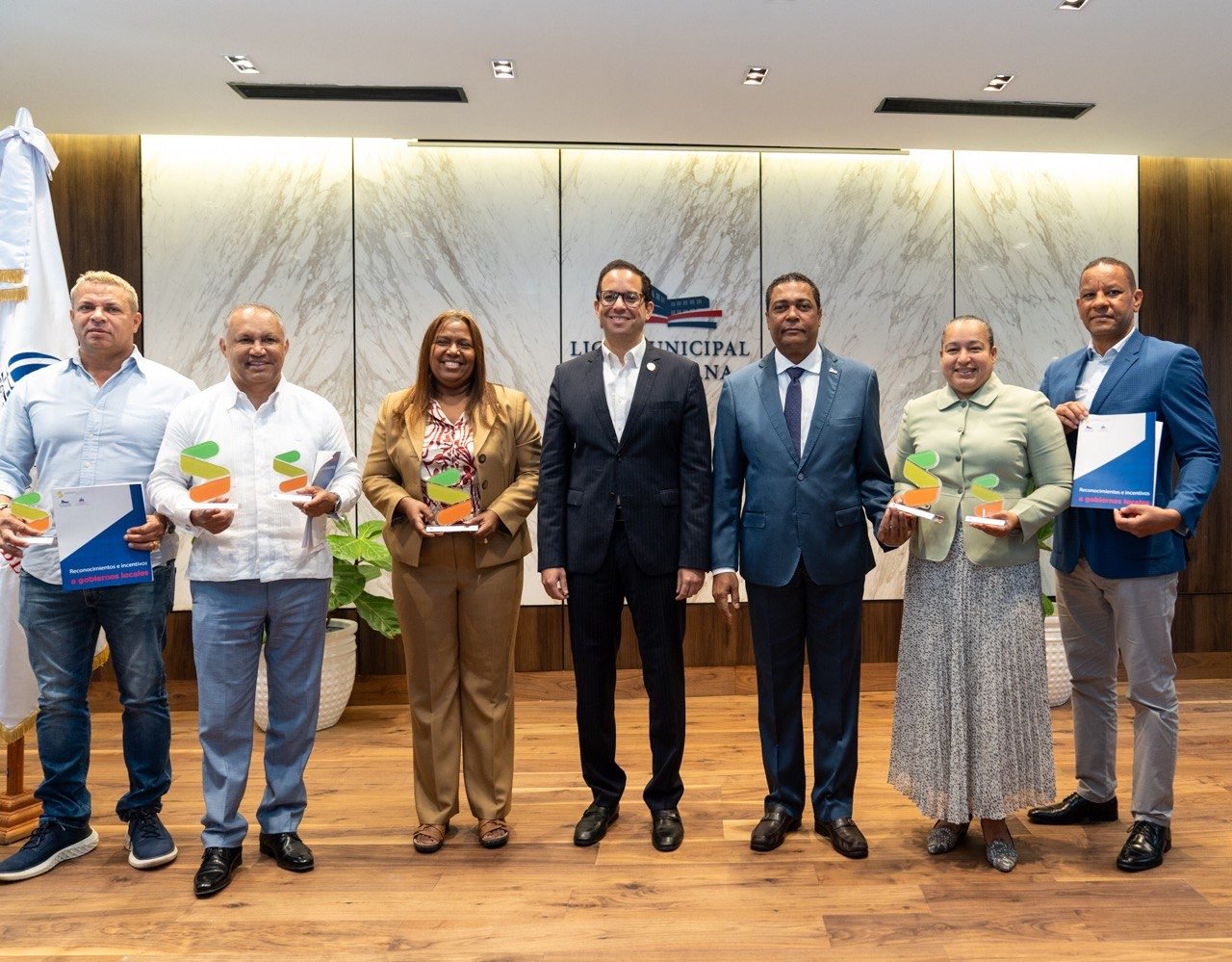Santo Domingo. – La Liga Municipal Dominicana (LMD) junto al Ministerio de Administración Pública (MAP) entregaron este miércoles los reconocimientos y los certificados de asignaciones presupuestarias a los 34 gobiernos locales que obtuvieron mejores resultados de desempeño municipal en el último corte trimestral de 2023.