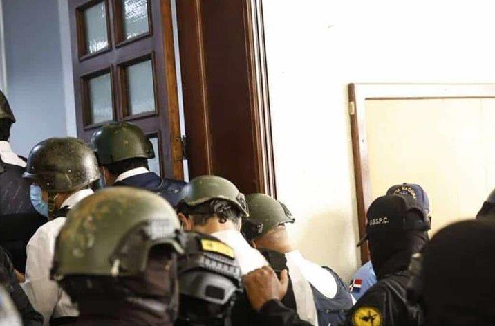 Santo Domingo. – Un fuerte dispositivo de seguridad rodea este domingo el Palacio de Justicia de Ciudad Nueva, donde se conoce la medida de coerción contra los imputados en el desfalco millonario al Seguro Nacional de Salud (Senasa). Más de 50 agentes de la Policía.