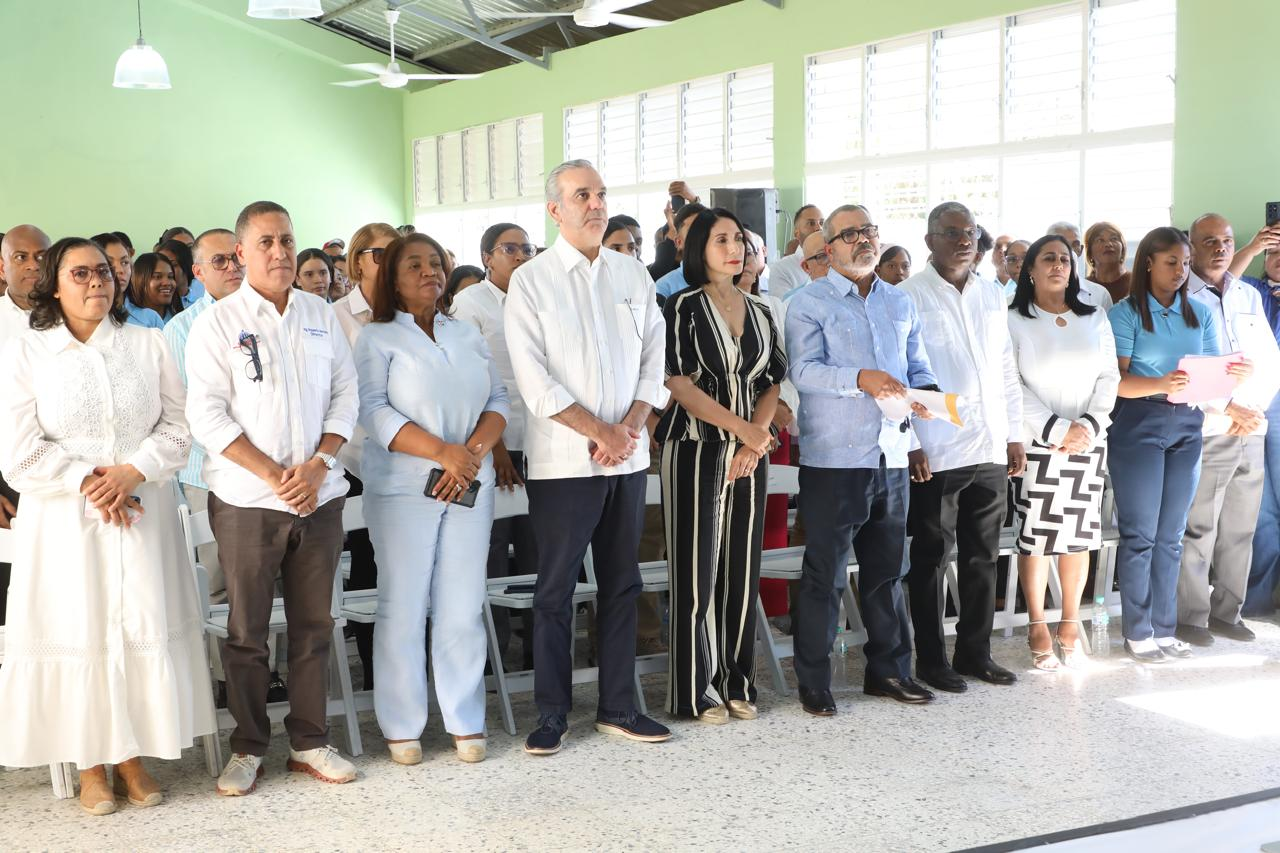 Las Matas de Farfán, San Juan.– Como parte del compromiso del Gobierno con el fortalecimiento del sistema educativo, el presidente Luis Abinader, junto a la primera dama Raquel Arbaje, inauguró este sábado el Centro Educativo León Romilio Rodríguez Ventura, en el distrito municipal Carrera de.