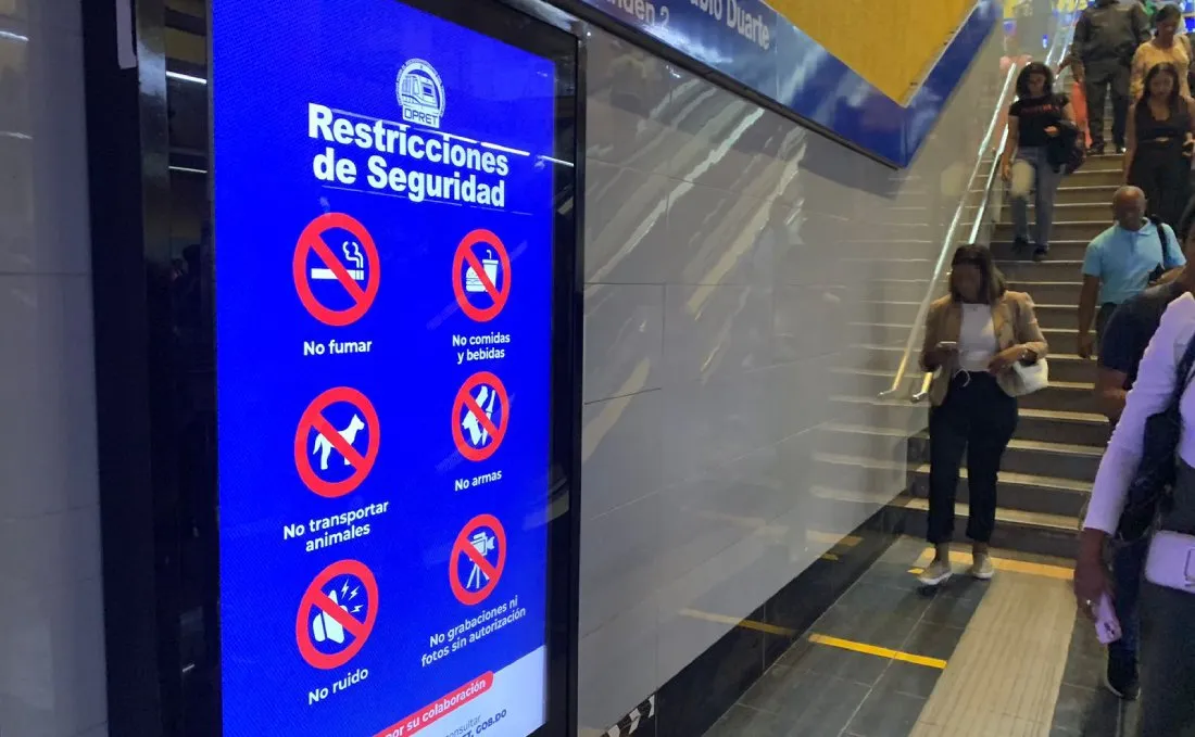 Santo Domingo.- En este jueves 12 de septiembre los usuarios del Metro de Santo Domingo pudieron notar una novedad: La Oficina para el Reordenamiento del Transporte (OPRET) ha comenzado a implementar nuevos anuncios en sus instalaciones, que a diferencias de anuncios pasados, si denota "en.