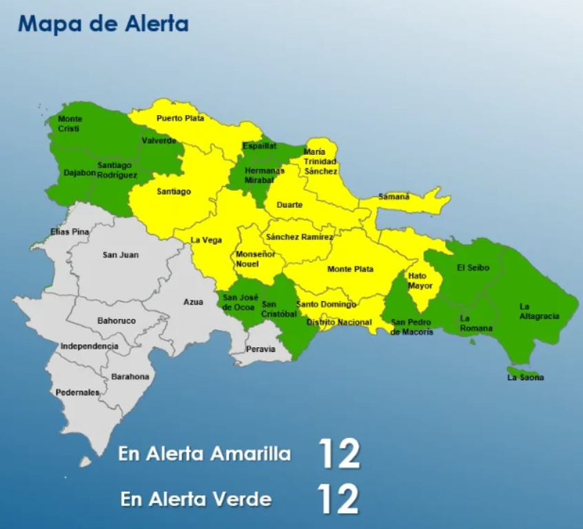 COE coloca 12 provincias en alerta amarilla y otras 12 en alerta verde por lluvias