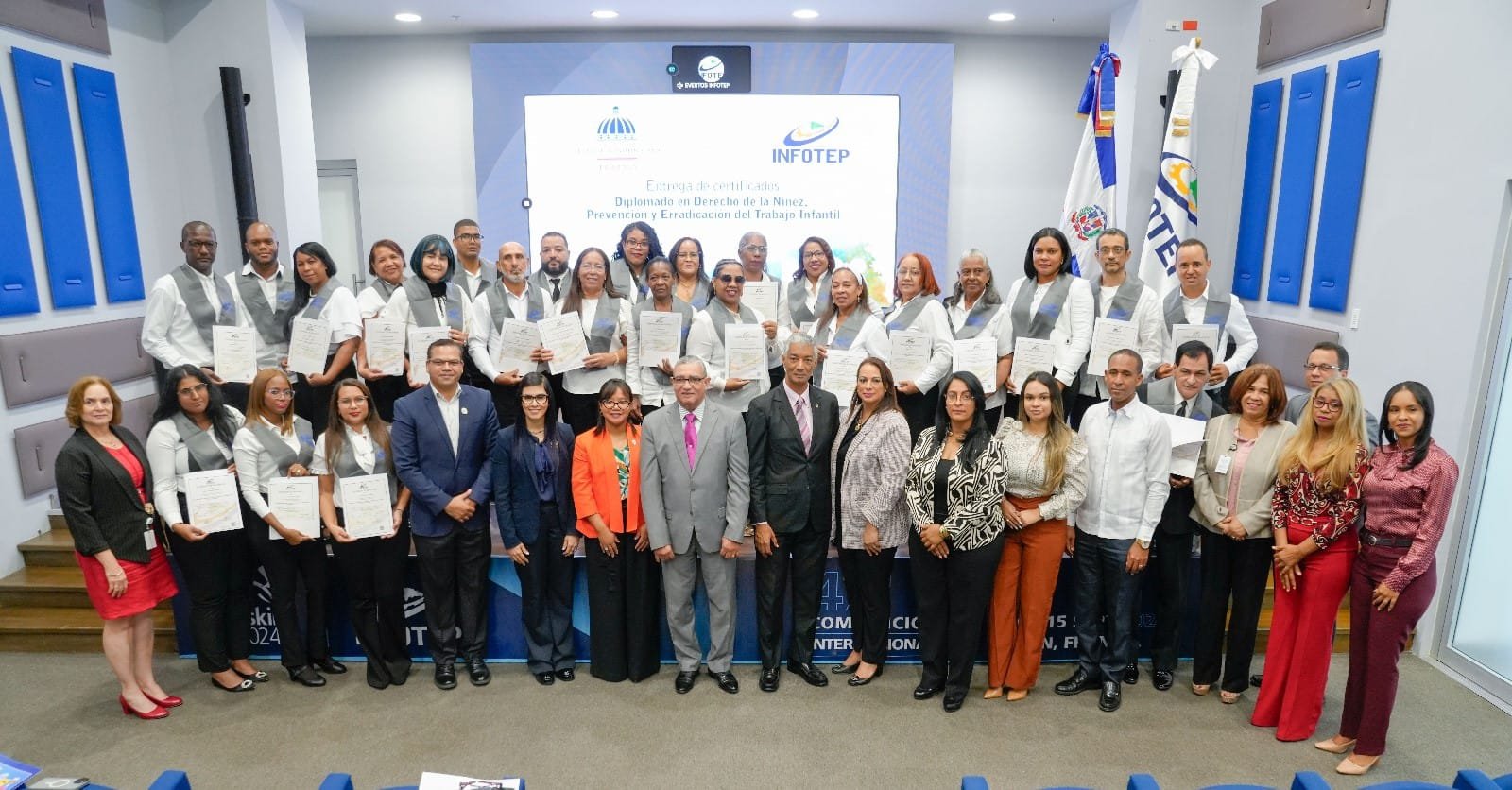 Distrito Nacional. – El Instituto Nacional de Formación Técnico Profesional (INFOTEP) entregó certificados a 44 participantes que concluyeron el Diplomado Derecho de la Niñez, Prevención y Erradicación del Trabajo Infantil, realizado en coordinación con el Ministerio de Trabajo y World Vision. El director de Formación.