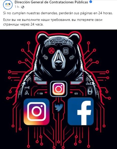 Santo Domingo.– Las cuentas en Instagram y Facebook de la Dirección General de Compras y Contrataciones Públicas (DGCP) fue hackeada por un usuario que se identifica como "Oso Negro" que asegura controla el sitio y advierte a la entidad gubernamental que tiene 24 horas "para cumplir" con sus "requisitos", los que no identifica. En ambas redes sociales.