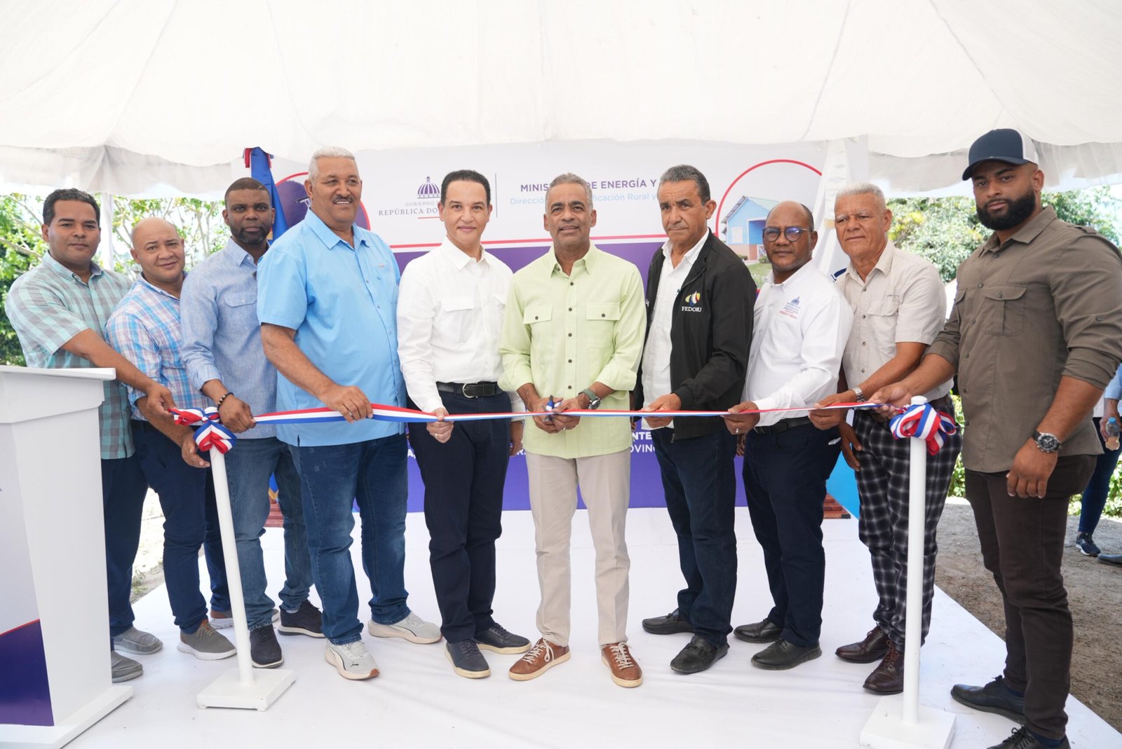 San José de Ocoa. – El ministro de Energía y Minas, Joel Santos, encabezó la entrega de proyectos de electrificación rural que beneficiarán a 213 hogares de comunidades de San José de Ocoa y San Cristóbal, impactando a cerca de 430 personas con una inversión.