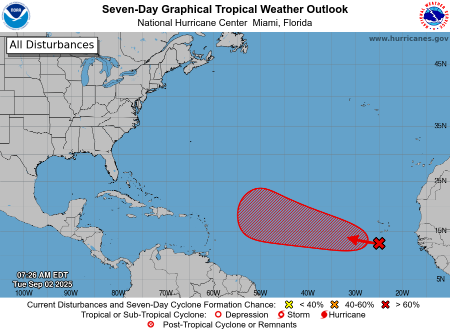 Santo Domingo. – Una onda tropical localizada al extremo oriental del Atlántico tropical, al sur de las islas de Cabo Verde aumentó en un 70 % las probabilidades de convertirse en ciclón tropical en los próximos días. El informe de este martes del Centro Nacional de Huracanes de Estados Unidos (CNH),.
