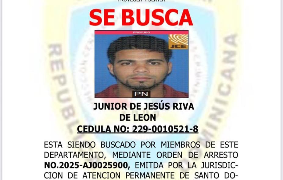 La Policía Nacional activó la búsqueda y captura de Junior de Jesús Riva de León, acusado de amenazar de muerte de manera sistemática de una mujer, conforme a la orden de arresto No. 2025-AJ0025900, emitida por la Oficina Judicial de Servicios de Atención Permanente de.
