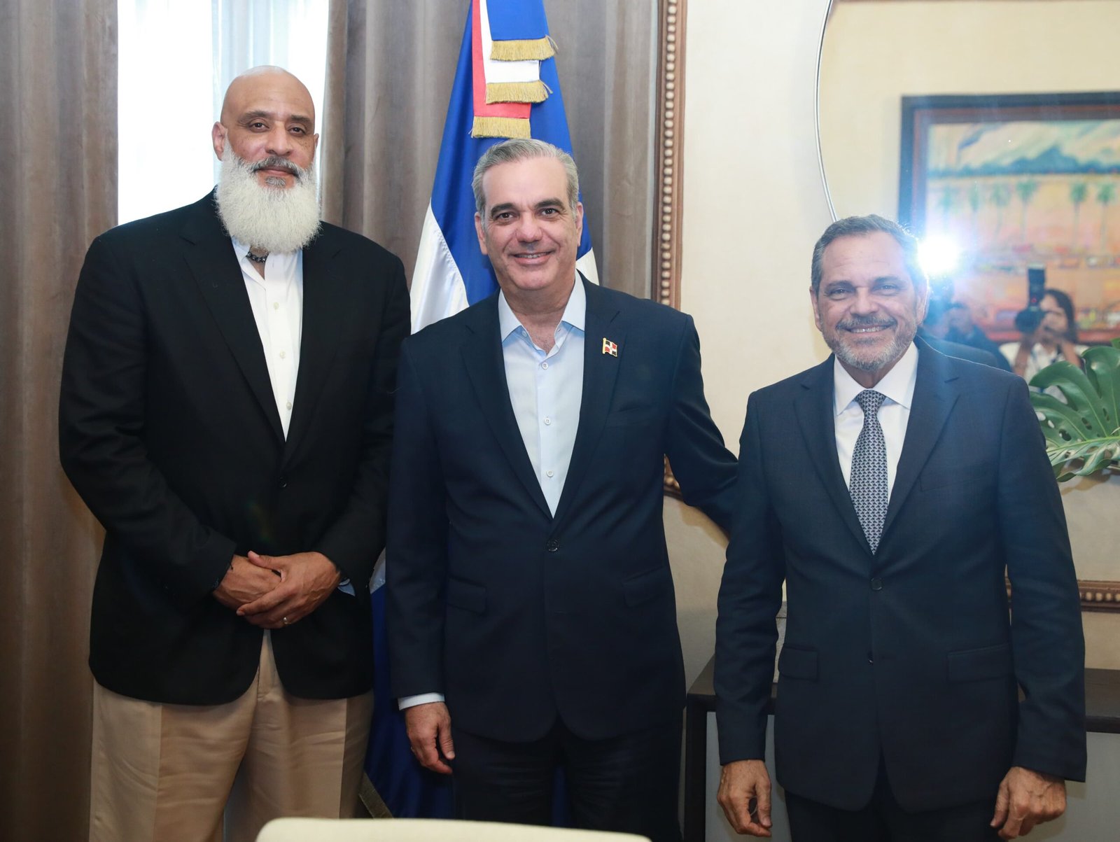 Santo Domingo. – El presidente Luis Abinader recibió en el Palacio Nacional a miembros y directivos de la Asociación de Peloteros de Grandes Ligas (MLBPA), con quienes sostuvo un encuentro en el salón de reuniones. En el mismo participaron Teoscar Hernández, Junior Caminero, Víctor Robles.