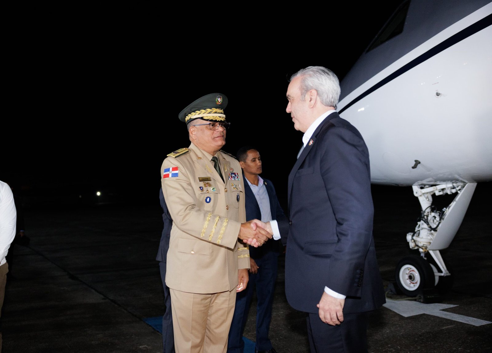 Santo Domingo, RD. – El Presidente Luis Abinader, arribó la noche de este lunes a la Base Aérea de San Isidro tras haber participado en la “International Energy Conference and Expo” celebrada en la República Cooperativa de Guyana. Allí el mandatario continuó implementando las políticas.