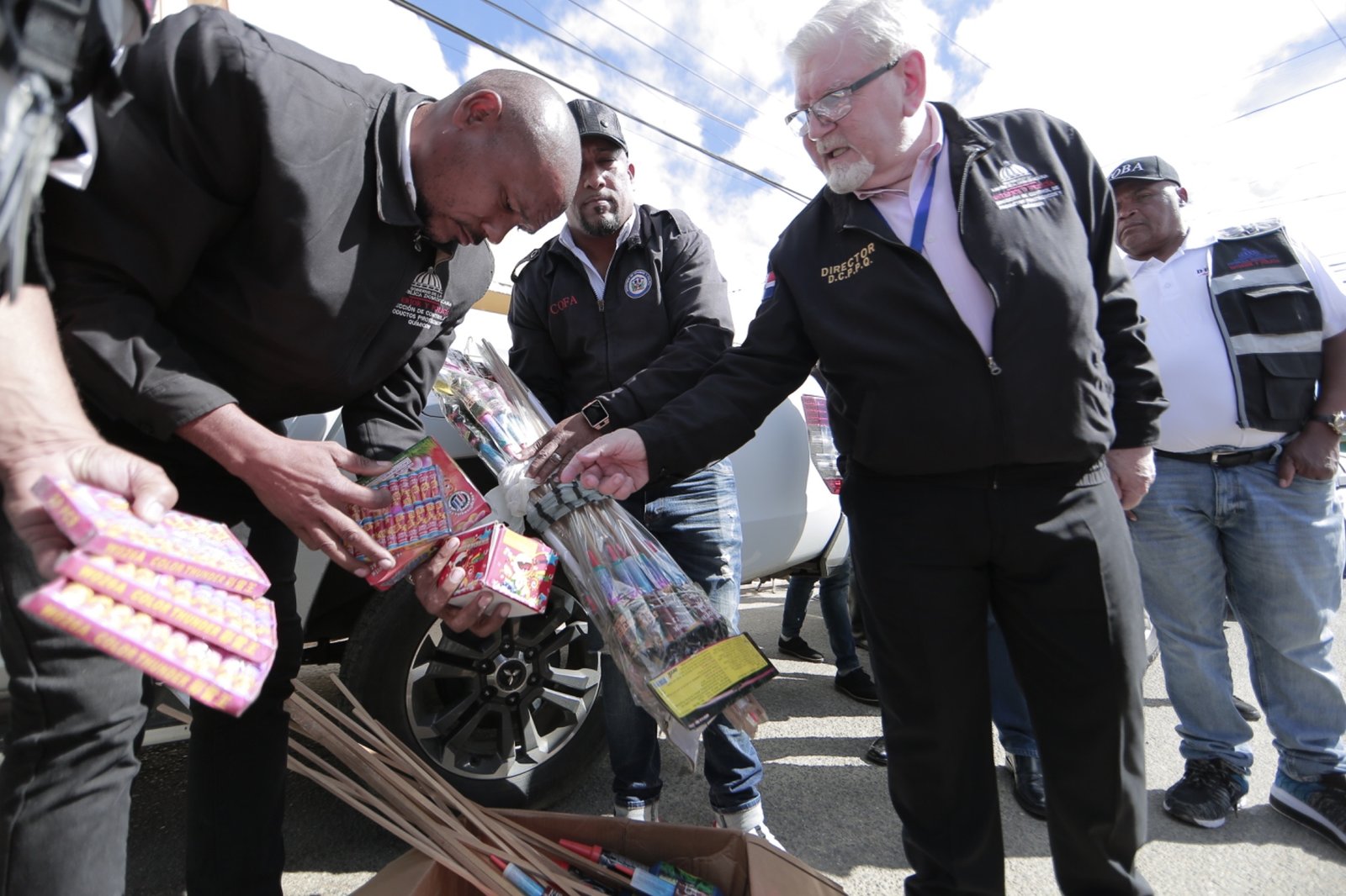 Constanza. – El Ministerio de Interior y Policía incautó en esta comunidad 1,416 unidades de fuegos artificiales y arrestó al propietario de una tienda y cerró el negocio, donde fueron encontrados gran cantidad de explosivos.   El detenido es John Manuel Quezada, propietario de Variedades Jhon.