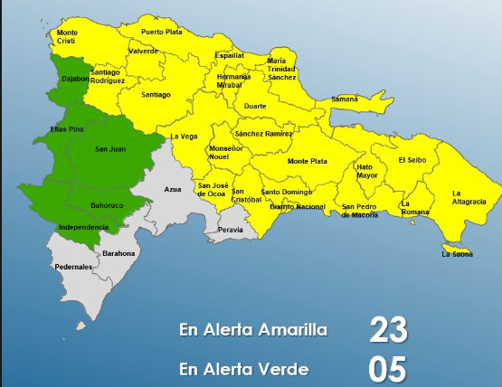 Santo Domingo.- El Instituto Dominicano de Meteorología (Indomet) pronosticó este jueves, Día de la Independencia Nacional, que desde la madrugada se han registrado nublados ocasionales con lluvias ligeras en las provincias de La Altagracia, La Romana y San Pedro de Macorís, condiciones que continuarán durante.