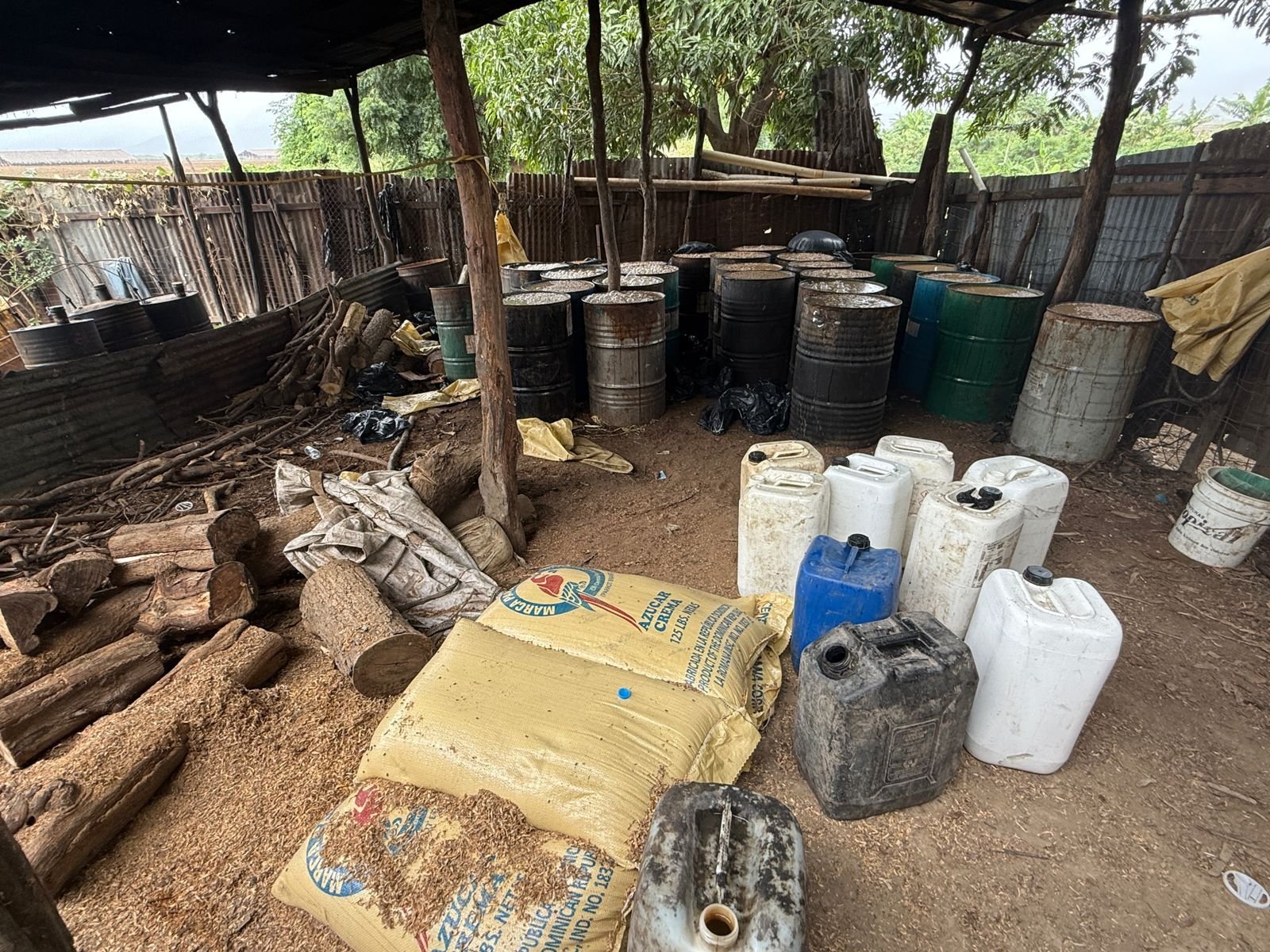 Decomisan más de 2,600 galones de bebidas adulteradas tras desmantelar laboratorio clandestino en Navarrete; apresan a dos personas