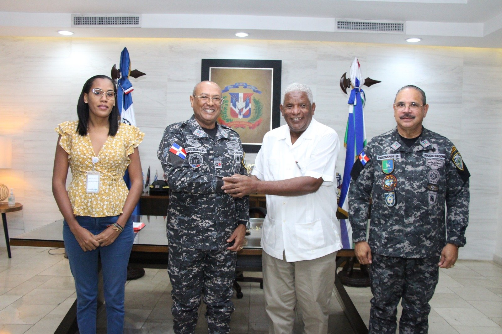 Santo Domingo. – El director general de la Policía Nacional, mayor general Ramón Antonio Guzmán Peralta, recibió en su despacho al presidente de la Comisión Nacional de los Derechos Humanos (CNDH-RD), Manuel María Mercedes, en un encuentro orientado al intercambio de impresiones sobre el respeto.