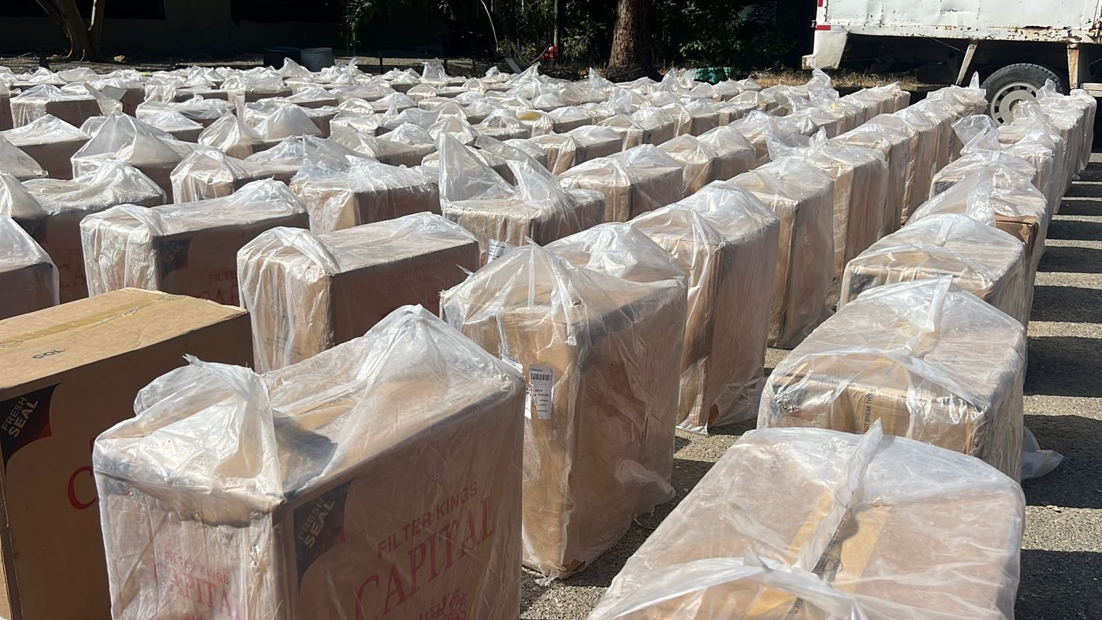 DINTEL ocupa 1.6 millones de unidades de cigarrillos clandestinos en Navarrete, Santiago