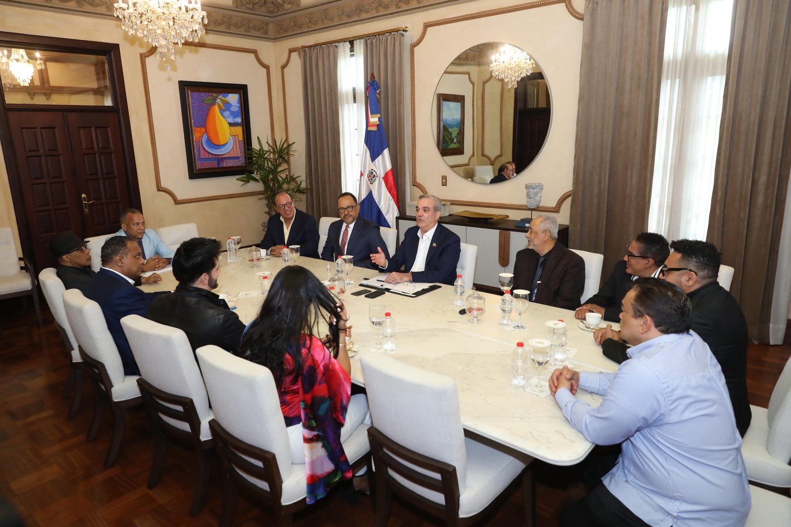 Santo Domingo.- El presidente de la República, Luis Abinader, sostuvo un encuentro con representantes de la Sociedad Dominicana de Artistas Intérpretes y Ejecutantes (Sodaie). El encuentro, donde el mandatario estuvo acompañado del consultor jurídico del Poder Ejecutivo, Antoliano Peralta, se llevó en el salón privado del Palacio Nacional donde trataron temas de.