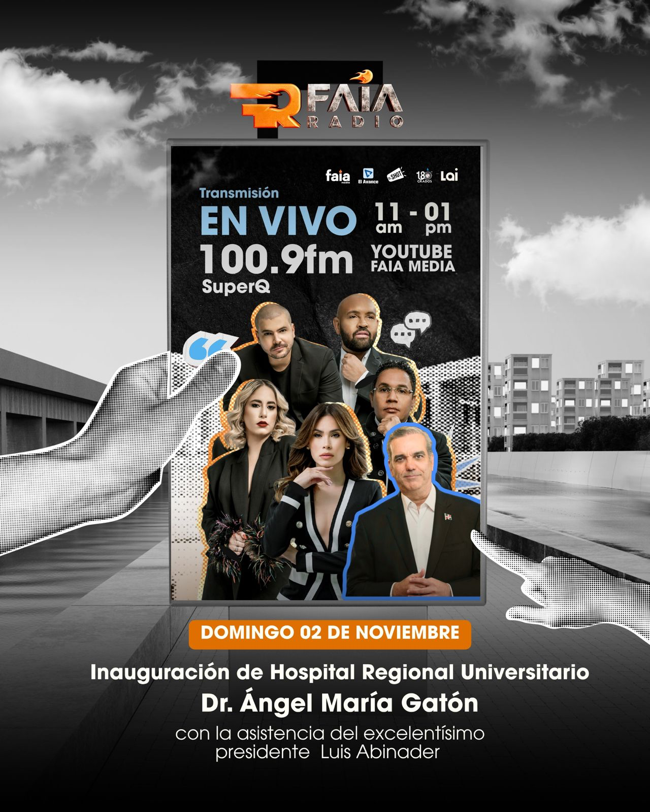 Santo Domingo.-Este domingo 2 de noviembre, todo el elenco de la plataforma Faia Media realizará una transmisión especial en vivo desde la ciudad de San Francisco de Macorís, con motivo de la entrega del Hospital Regional Universitario Dr. Ángel María Gatón. La esperada obra, de gran impacto para la.