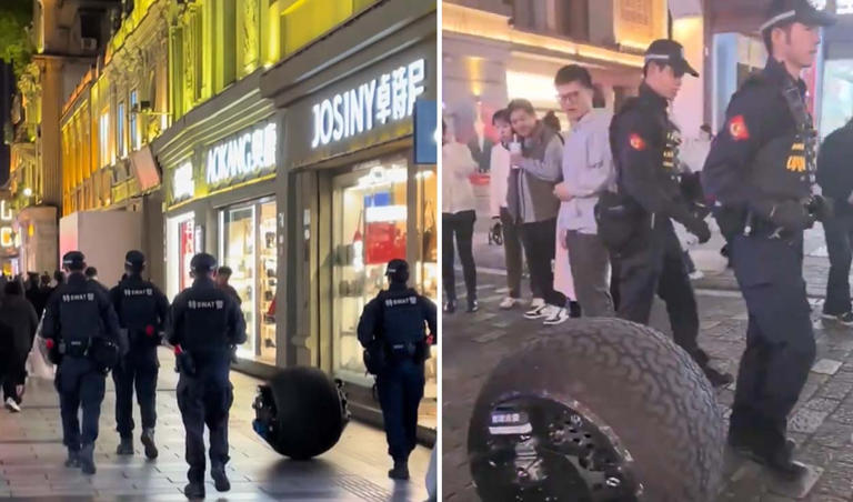 ¿Mini RoboCop? Graban a "RT-G": un aparato de la policía china que patrulla las calles