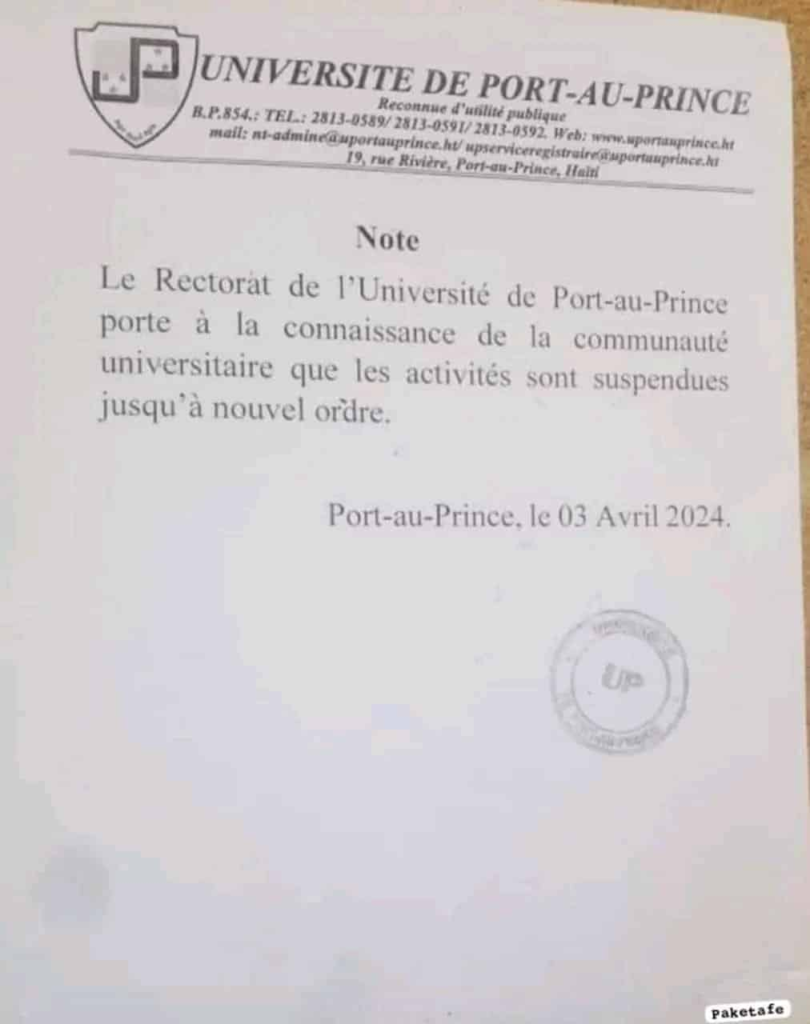 Haití.- La prestigiosa Universidad de Puerto Príncipe, conocida como "Université de Port au Prince" o "Université de PauP", ha tomado la difícil decisión de cerrar sus puertas de manera indefinida en respuesta a la creciente ola de violencia que azota a la capital de Haití. Fundada hace 40 años como una institución privada de educación superior, la universidad ha sido un pilar en la formación académica del país.
