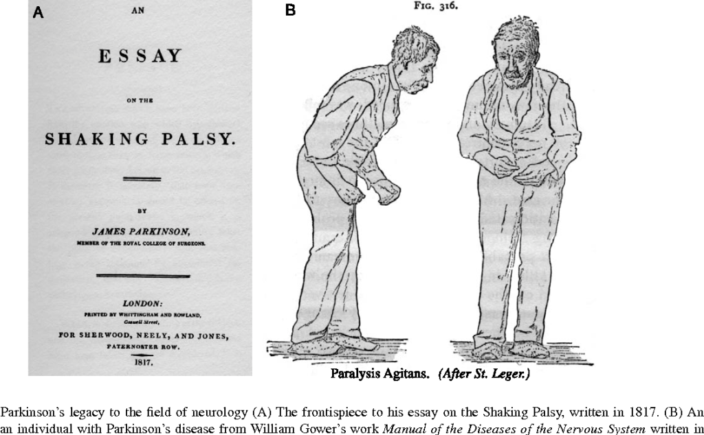 Figura del documento científico publico por James Parkinson, dando muestras de la enfermedad en épocas pasadas. Fuente: externa.