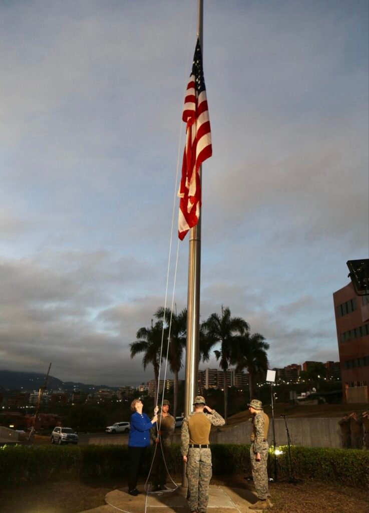 La encargada de Negocios estadounidense, Laura Dogu, informó que el acto se realizó exactamente siete años después de que la bandera fuera retirada de la sede diplomática en 2019, cuando ambos países rompieron relaciones.