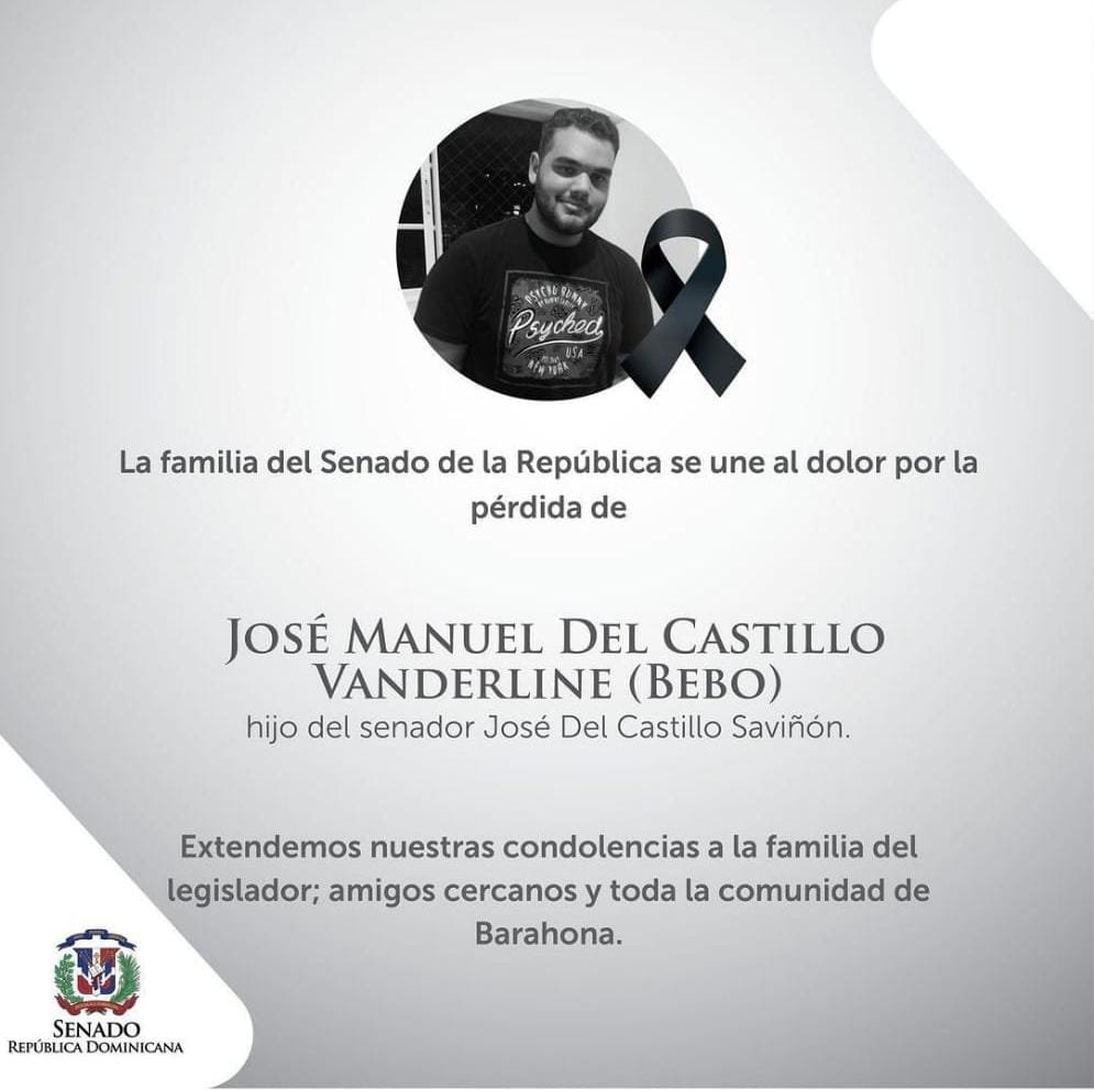 El deceso más reciente fue el de José Manuel del Castillo Vanderline (Bebo), hijo del senador por Barahona, José del Castillo Saviñon.