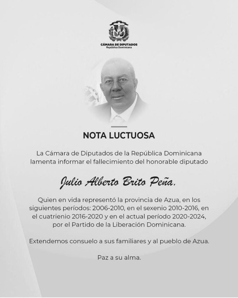 El también diputado por Azua, Julio Brito Peña, quien falleció de cáncer de próstata el pasado 18 de marzo.