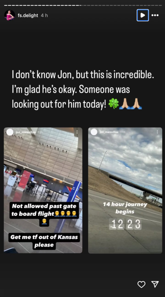 En su cuenta de Instagram*, Maravilla publicó antes del accidente dos historias de las que se han hecho eco en las redes, en las que se quejaba porque no le habían permitido embarcar en el vuelo.