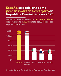 Santo Domingo.– España se posicionó como el principal inversor extranjero en la República Dominicana durante 2025, de acuerdo con datos recientes publicados por el Banco Central.