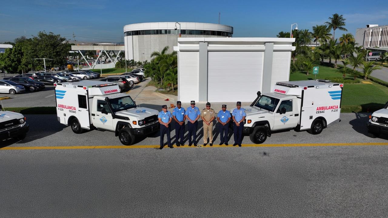 Santo Domingo. – El Ministerio de Defensa (MIDE) entregó cuatro modernas ambulancias todo terreno al Cuerpo Especializado en Seguridad Aeroportuaria y de la Aviación Civil (Cesac), con el objetivo de reforzar las capacidades de respuesta ante emergencias médicas en los principales aeropuertos del país. La.
