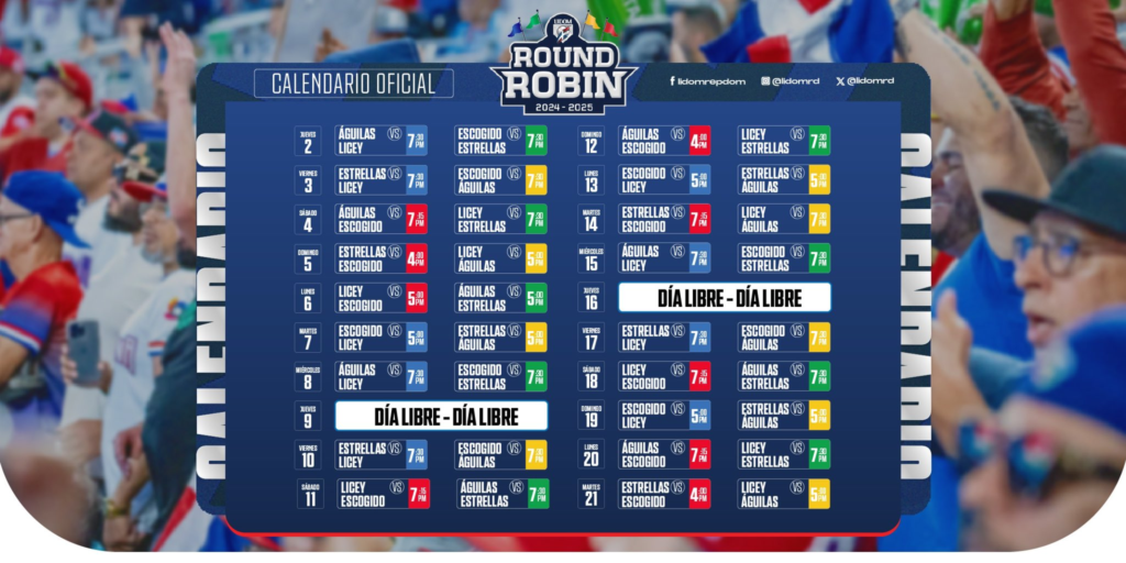 Santo Domingo.- Hoy inicia la etapa más emocionante del béisbol invernal dominicano: el Round Robin de la Liga de Béisbol Profesional de la República Dominicana (LIDOM). Cuatro equipos lucharán por un puesto en la gran final, y la jornada inaugural promete emociones intensas con dos enfrentamientos de alto voltaje.