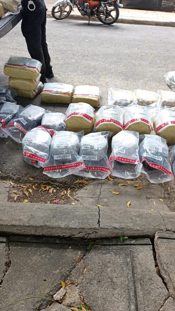La sustancia narcótica, según una publicación difundida por las redes sociales, era transportada en un camión Marca Daihatsu, color Blanco, la que tras su incautación fue presentada y entregada a la DNCD.