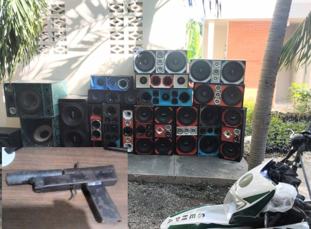 Barahona. – La Policía Nacional, a través de la Dirección Regional Sur, realizó operativos preventivos en distintos municipios y sectores de la provincia de Barahona. Estas acciones resultaron en la retención de 19 bocinas utilizadas para contaminación sónica y la alteración del orden público.
