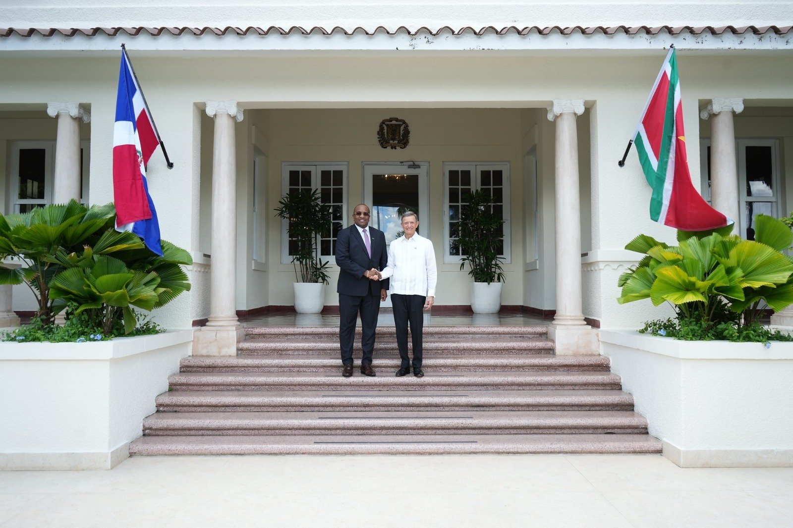 Santo Domingo de Guzmán, República Dominicana. – El ministro de Relaciones Exteriores Roberto Álvarez recibió a su homólogo de Surinam, Melvin Bouva, en el marco de su visita oficial al país, con una agenda orientada a consolidar y ampliar las relaciones diplomáticas, comerciales y de cooperación entre ambas naciones.