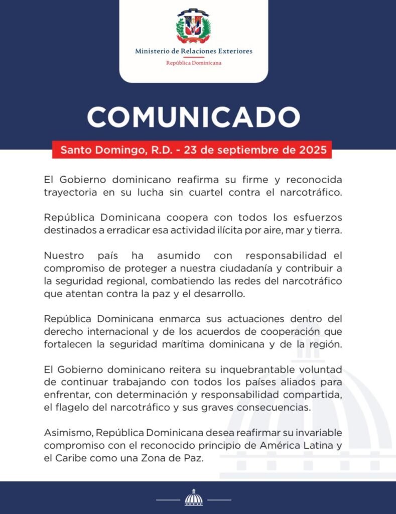 “El Estado dominicano ha asumido con responsabilidad el deber de proteger a su ciudadanía y contribuir a la seguridad regional, enfrentando de manera decidida las redes del narcotráfico que amenazan la paz y el desarrollo”, señala el documento.