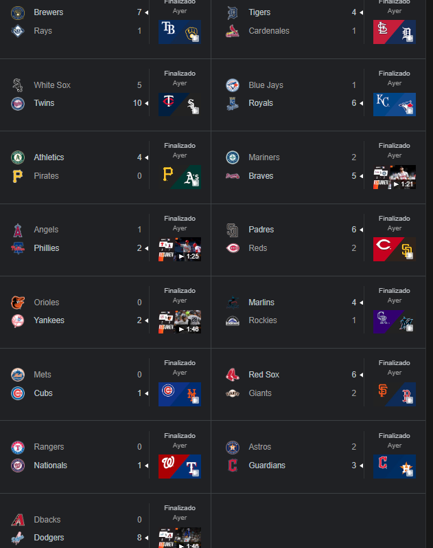 Resultados de la MLB: