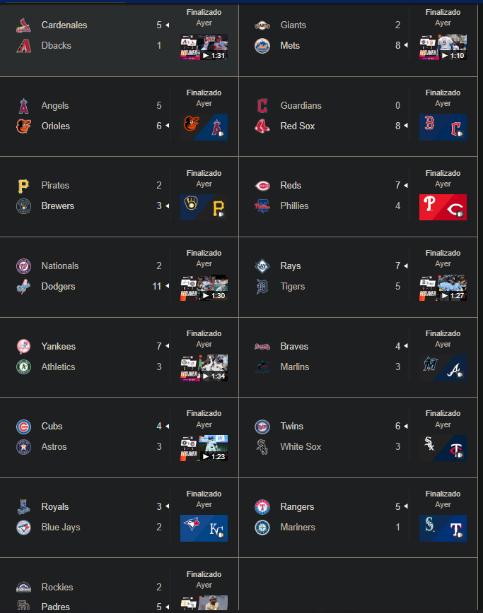 Estados Unidos.- Esta última jornada de las Grandes Ligas ha sido electrizante y ha dejado mucho de que hablar, se disputaron 15 encuentros entre los diferentes equipos que dieron hasta el máximo para ejecutar un gran espectáculo y béisbol dela más alta calidad.