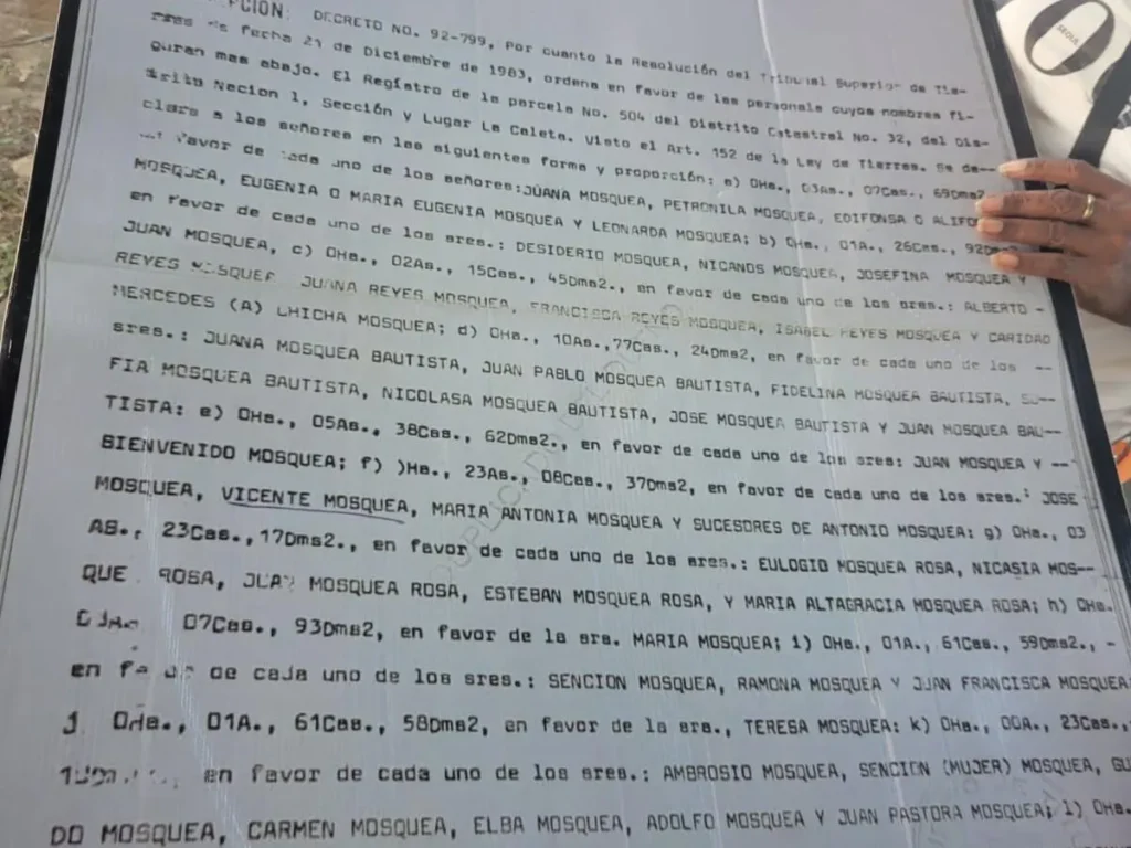 Los reclamantes mostraron la copia de un documento, el cual aseguran es el título original de dichos terrenos lo cual habría sido reconocido por el Ministerio de Hacienda.